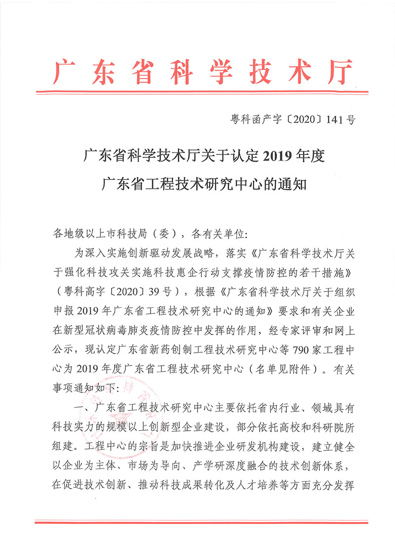 海星体育直播机械制造有限公司于2019年认定为广东省工程技术研究中心